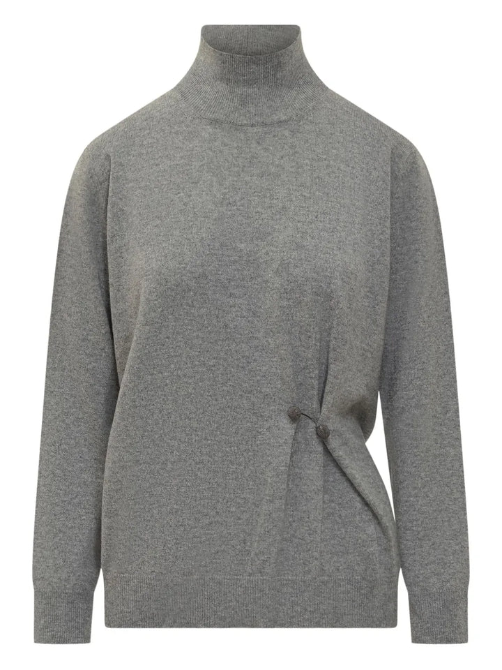high-neck pin-detail sweater