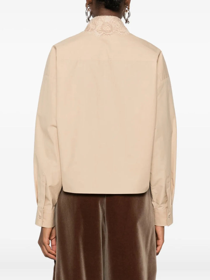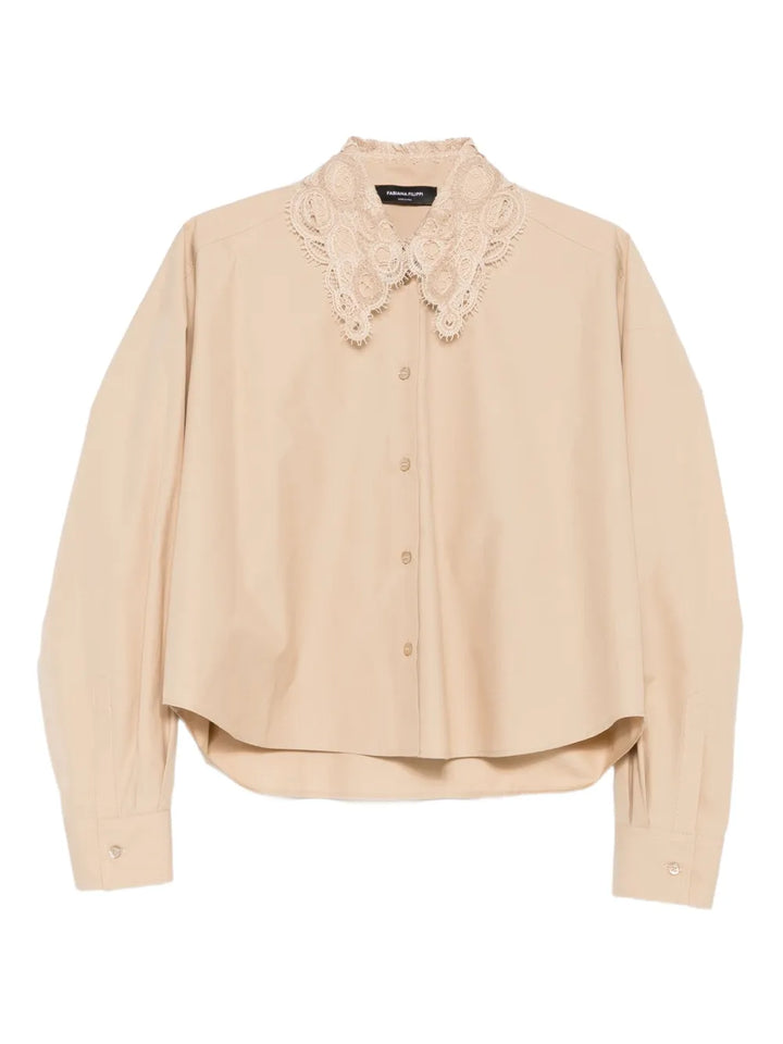 lace-trimmed button-down shirt